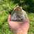 At its core, a cluster of genuine moonstone crystals is carefully arranged, infusing the pyramid with the luminous and calming energies for which moonstone is revered. Moonstone, with its associations with intuition, feminine energy, and emotional balance, forms the foundation of this pyramid, creating a harmonious blend of celestial and grounding vibrations.